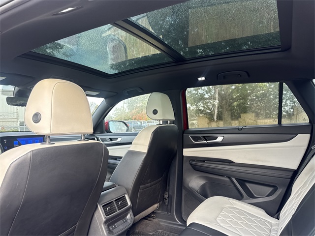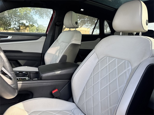 ility Control, Emergency communication system: VW Car-Net Safe & Secure 5-year, Exterior Parking Camera Rear, Four wheel independent suspension, Front anti-roll bar, Front Bucket Seats, Front Center Armrest, Front dual zone A/C, Front fog lights, Front reading lights, Fully automatic headlights, harman/kardon® Speakers, Heads-Up Display, Heated & Actively Ventilated Front Seats, Heated door mirrors, Heated front seats, Heated rear seats, Heated steering wheel, Illuminated entry, Leather steering wheel, LOCAL TRADE IN!, Low tire pressure warning, Memory seat, NAVIGATION, Navigation System, NON SMOKER VEHICLE, Occupant sensing airbag, Outside temperature display, Overhead airbag, Overhead console, Panic alarm, Passenger door bin, Passenger vanity mirror, Perforated Vienna Leather Seating Surfaces, Power door mirrors, Power driver seat, Power Liftgate, Power moonroof: Panoramic, Power passenger seat, Power steering, Power windows, PROFESSIONALLY DETAILED FOR DELIVERY!, Radio data system, Radio: MIB3 Discover Media Navigation AM/FM/HD, Rain sensing wipers, Rear anti-roll bar, Rear audio controls, Rear reading lights, Rear seat center armrest, Rear window defroster, Rear window wiper, Remote keyless entry, Security system, Speed control, Speed-sensing steering, Split folding rear seat, Spoiler, Sport steering wheel, Steering wheel mounted audio controls, SUNROOF/MOONROOF, SUPER LOW MILES!, Tachometer, Telescoping steering wheel, Tilt steering wheel, Traction control, Trip computer, Turn signal indicator mirrors, Ventilated front seats, Wheels: 21" 2-Tone Machined Alloy. Certified.