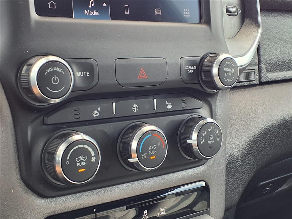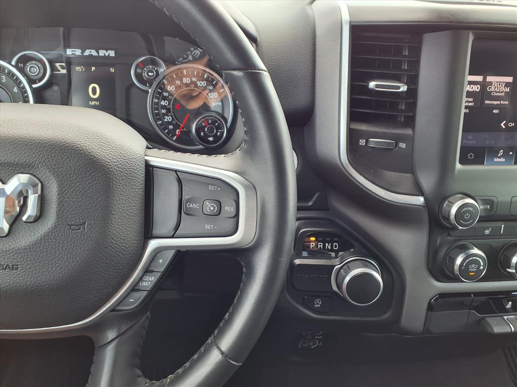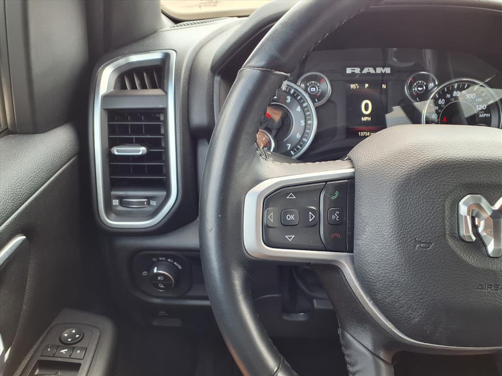 This 2024 RAM Quad Cab Pickup Truck 1500 Big Horn/Lone Star is a state-of-the-art motorcar. It has a 3.6 liter 6 cylinder engine with sequential port fuel injection, and it has been driven 13,703 miles. It has a bright white clearcoat exterior and a black interior, with a crash test rating of 4 out of 5 stars. This vehicle also features hill start assist, making it easy to get started even in slippery conditions. With its fuel economy in city 20 mpg and fuel economy on highway 25 mpg, this car i