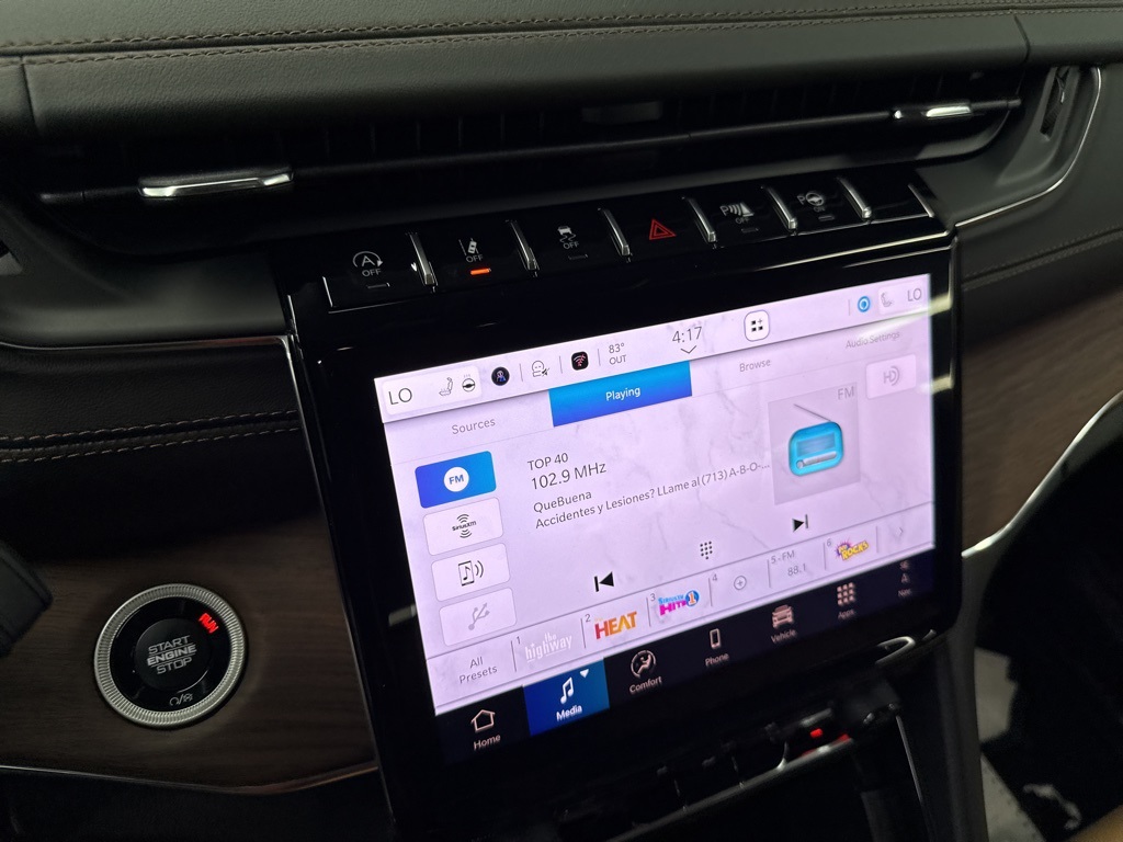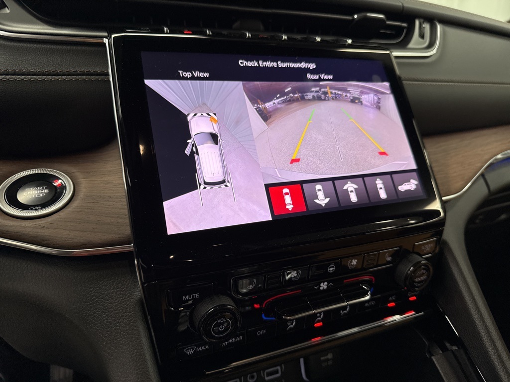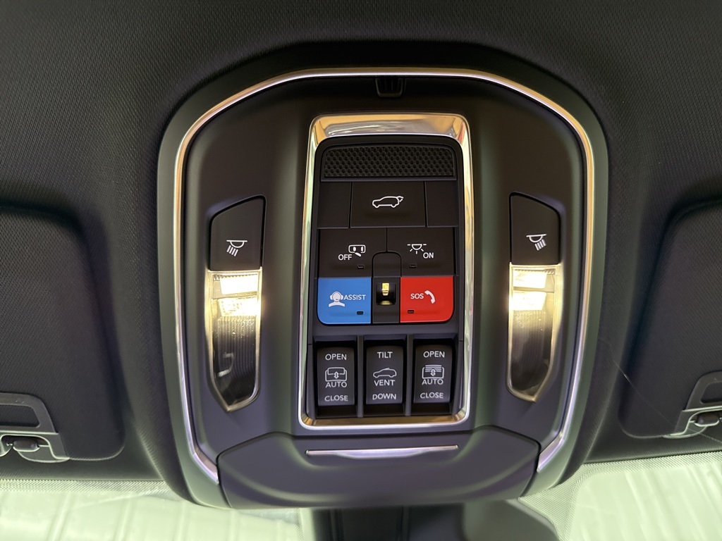 -dimming Rear-View mirror, Auto-leveling suspension, Automatic temperature control, Auxiliary Battery, Brake assist, Bumpers: body-color, Compass, Delay-off headlights, Driver door bin, Driver vanity mirror, Dual front impact airbags, Dual front side impact airbags, Electronic Stability Control, Emergency communication system, Four wheel independent suspension, Front anti-roll bar, Front Bucket Seats, Front Center Armrest w/Storage, Front dual zone A/C, Front fog lights, Front License Plate Bracket, Front reading lights, Fully automatic headlights, Garage door transmitter, Genuine wood dashboard insert, Genuine wood door panel insert, Heated door mirrors, Heated front seats, Heated rear seats, Heated steering wheel, Illuminated entry, Knee airbag, Leather steering wheel, Low tire pressure warning, Memory seat, Model Year Tracking, Nappa Leather Seats, Navigation System, Normal Duty Suspension, Occupant sensing airbag, Outside temperature display, Overhead airbag, Overhead console, Panic alarm, Passenger door bin, Passenger vanity mirror, Power door mirrors, Power driver seat, Power Liftgate, Power moonroof, Power passenger seat, Power steering, Power windows, Radio data system, Radio: Uconnect 5 Nav w/10.1" Display, Rain sensing wipers, Rear air conditioning, Rear anti-roll bar, Rear dual zone A/C, Rear reading lights, Rear seat center armrest, Rear window defroster, Rear window wiper, Remote keyless entry, Security system, Speed control, Speed-Sensitive Wipers, Split folding rear seat, Spoiler, Steering wheel memory, Steering wheel mounted audio controls, Tachometer, Telescoping steering wheel, Tilt steering wheel, Traction control, Trip computer, Turn signal indicator mirrors, Variably intermittent wipers, Ventilated front seats, Voltmeter, and Wheels: 20" x 8.5" Fully Painted Aluminum Silver.