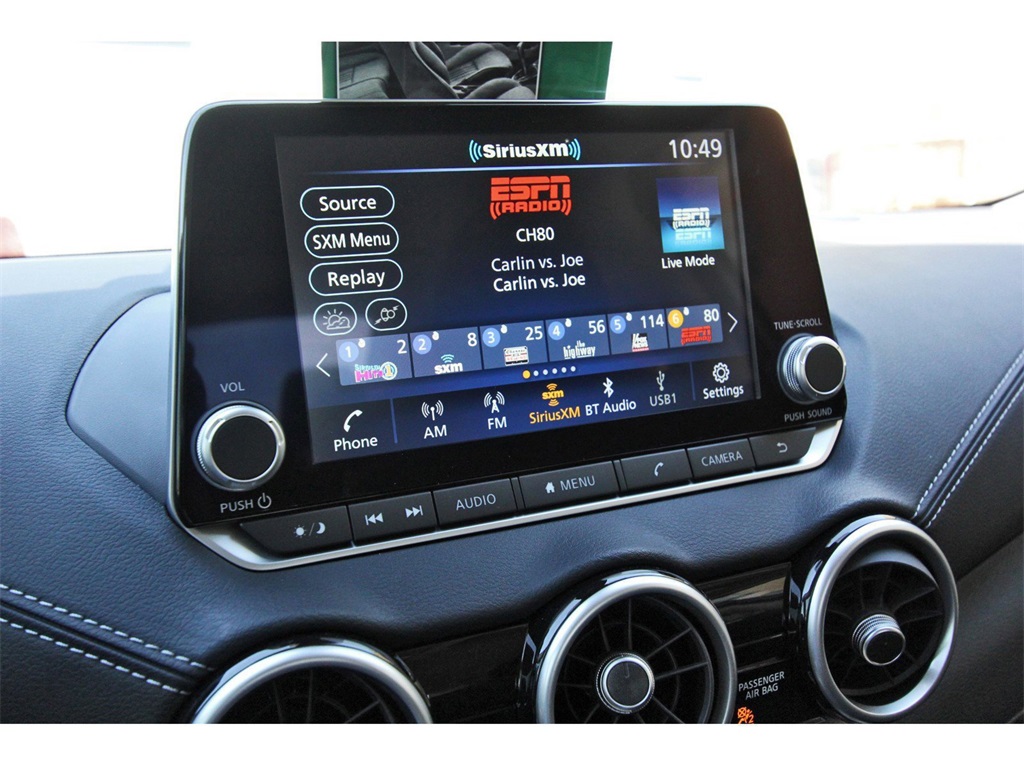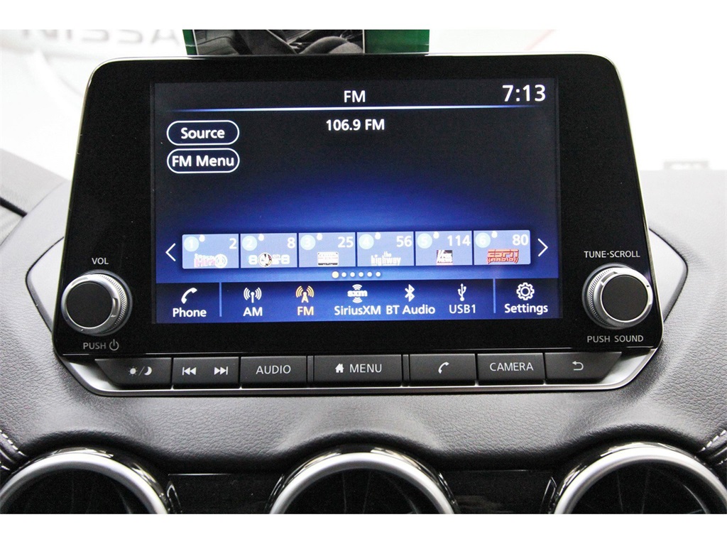 at, Clear Rear Bumper Protector, Delay-off headlights, Door Sill Plates, Driver door bin, Driver vanity mirror, Dual front impact airbags, Dual front side impact airbags, Electronic Stability Control, Four wheel independent suspension, Front anti-roll bar, Front Bucket Seats, Front Center Armrest, Front reading lights, Fully automatic headlights, Illuminated entry, Knee airbag, Low tire pressure warning, NissanConnect featuring Apple CarPlay and Android Auto, Occupant sensing airbag, Outside temperature display, Overhead airbag, Overhead console, Panic alarm, Passenger door bin, Passenger vanity mirror, Power door mirrors, Power steering, Power windows, Radio data system, Radio: AM/FM with RDS/MP3/Aux-in, Rear anti-roll bar, Rear Parking Sensors, Rear side impact airbag, Rear window defroster, Remote keyless entry, Security system, Speed control, Speed-sensing steering, Split folding rear seat, Steering wheel mounted audio controls, Tachometer, Telescoping steering wheel, Tilt steering wheel, Traction control, Trip computer, Upgraded Cloth Seat Trim, and Variably intermittent wipers!!