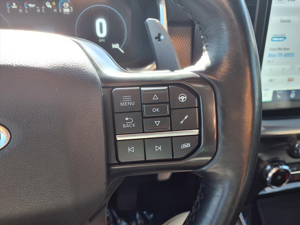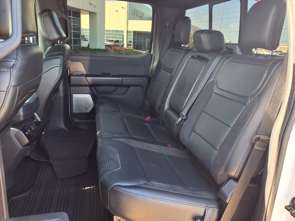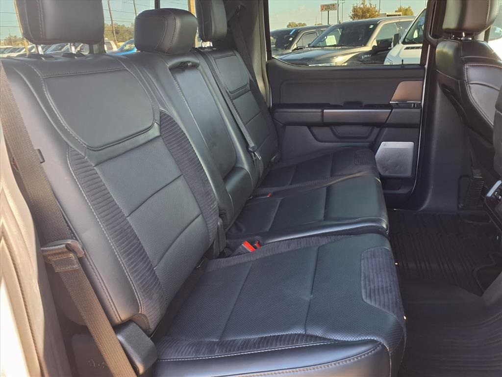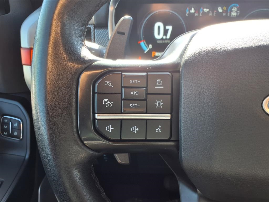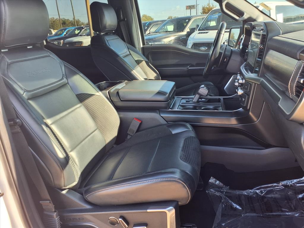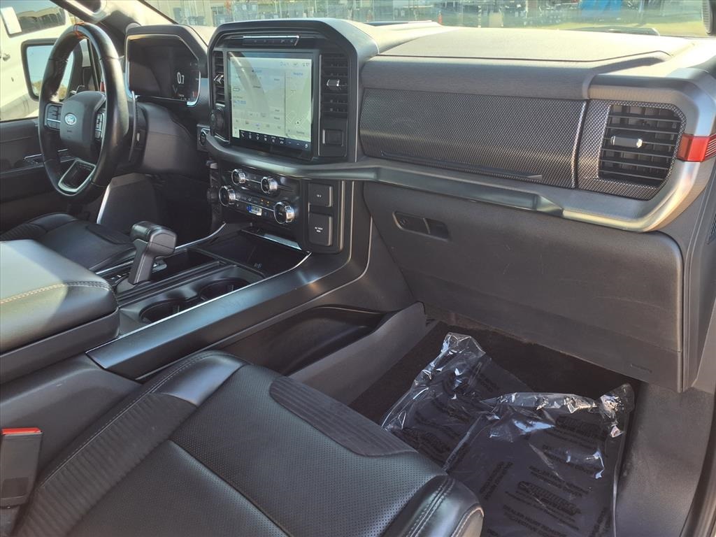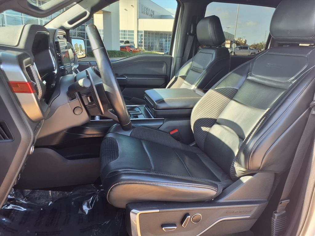 by Bang & Olufsen, Rain-Sensing Wipers, SYNC 4 w/Enhanced Voice Recognition, Tailgate Applique FORD, Universal Garage Door Opener, and Wireless Charging Pad), GVWR: 7,050 lbs Payload Package, Moonroof & Tailgate (Power Tailgate and Twin Panel Moonroof), Raptor Exterior Graphics Package, Torsen Package (Front-Axle w/Torsen Differential and Rigid LED Fog Lamp), Tow Technology Package (360 Degree Camera, Integrated Trailer Brake Controller, and Pro Trailer Backup Assist), Ford Blue Advantage: Blue Certified Certified, 4WD, 17" Cast Aluminum Wheels, 4-Wheel Disc Brakes, 7 Speakers, ABS brakes, Adaptive suspension, Adjustable pedals, Air Conditioning, Alloy wheels, AM/FM radio: SiriusXM with 360L, Auto High-beam Headlights, Auto Start-Stop Removal, Auto-dimming door mirrors, Auto-dimming Rear-View mirror, Automatic temperature control, Brake assist, Bumpers: body-color, Compass, Delay-off headlights, Driver door bin, Driver vanity mirror, Dual front impact airbags, Dual front side impact airbags, Electronic Stability Control, Emergency communication system, Exterior Parking Camera Rear, Front anti-roll bar, Front Bucket Seats, Front Center Armrest, Front dual zone A/C, Front License Plate Bracket, Front reading lights, Front wheel independent suspension, Fully automatic headlights, Heated door mirrors, Heated front seats, Illuminated entry, Lane Departure Warning System, Leather Trim Seats, Low tire pressure warning, Memory seat, Navigation system: Connected Navigation, Occupant sensing airbag, Outside temperature display, Overhead airbag, Overhead console, Panic alarm, Passenger door bin, Passenger vanity mirror, Pedal memory, Power door mirrors, Power driver seat, Power passenger seat, Power steering, Power windows, Pro Power Onboard - 2KW, Radio data system, Radio: AM/FM SiriusXM w/360L, Rear reading lights, Rear step bumper, Rear window defroster, Remote keyless entry, Security system, Speed control, Speed-sensing steering, Split folding rear seat, Steering wheel mounted audio controls, Tachometer, Telescoping steering wheel, Tilt steering wheel, Traction control, Trip computer, Turn signal indicator mirrors, Variably intermittent wipers, and Ventilated front seats.
