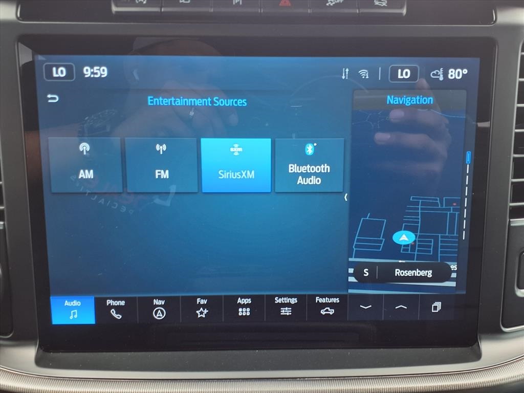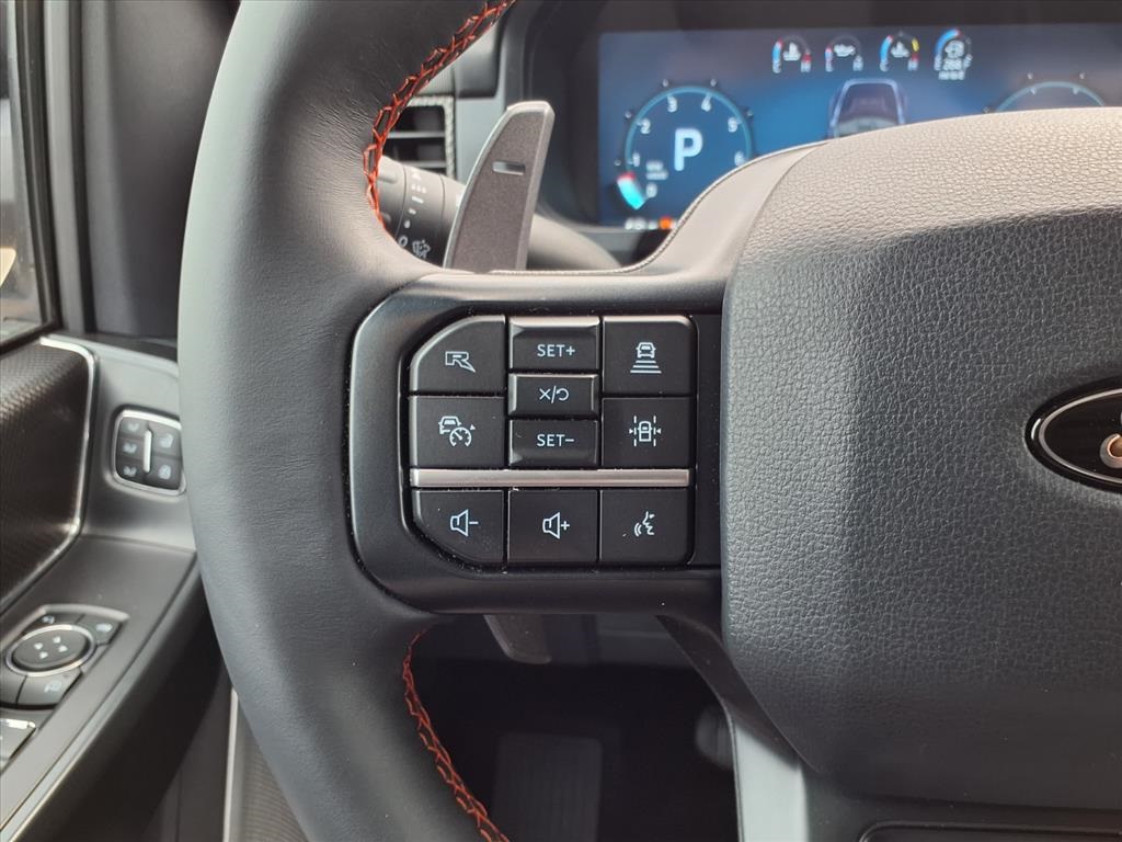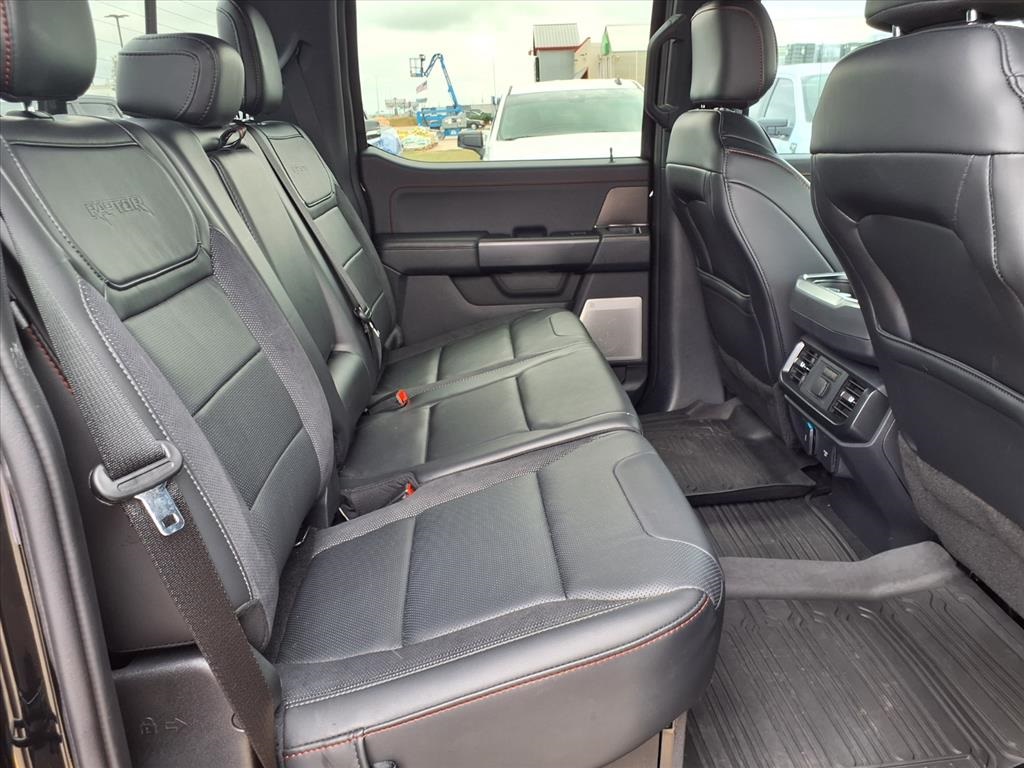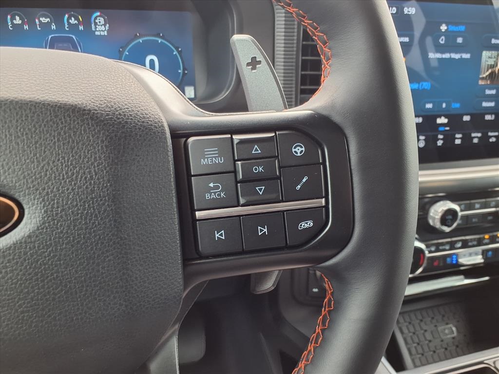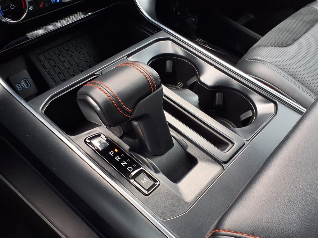 erature control, Brake assist, Bumpers: body-color, Compass, Delay-off headlights, Driver door bin, Driver vanity mirror, Dual front impact airbags, Dual front side impact airbags, Electronic Locking w/4.10 Axle Ratio, Electronic Stability Control, Emergency communication system: SYNC 4 911 Assist, Front anti-roll bar, Front Bucket Seats, Front Center Armrest, Front dual zone A/C, Front fog lights, Front License Plate Bracket, Front reading lights, Front wheel independent suspension, Fully automatic headlights, Garage door transmitter, Heads-Up Display, Heated door mirrors, Heated front seats, Heated rear seats, Heated steering wheel, Illuminated entry, Lane Departure Warning System, Leather Trim Seats, Low tire pressure warning, Memory seat, Navigation system: Connected Navigation, Occupant sensing airbag, Outside temperature display, Overhead airbag, Overhead console, Panic alarm, Passenger door bin, Passenger vanity mirror, Pedal memory, Power door mirrors, Power driver seat, Power passenger seat, Power steering, Power windows, Radio data system, Radio: B&O Unleashed Sound System by Bang & Olufsen, Rain sensing wipers, Rear reading lights, Rear step bumper, Rear window defroster, Remote keyless entry, Security system, Speed control, Speed-sensing steering, Split folding rear seat, Steering wheel memory, Steering wheel mounted audio controls, SYNC 4 w/Enhanced Voice Recognition, Tachometer, Telescoping steering wheel, Tilt steering wheel, Tough Bed Spray-In Bedliner, Traction control, Trip computer, Turn signal indicator mirrors, Twin Panel Moonroof, Variably intermittent wipers, and Ventilated front seats.