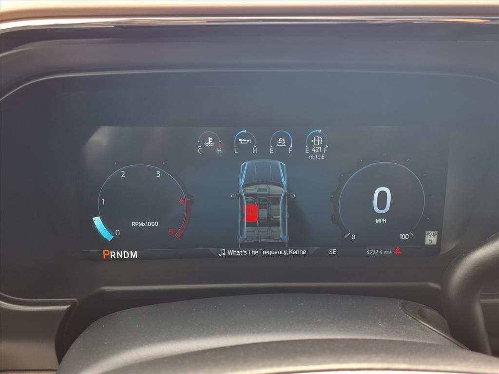 -beam Headlights, Auto-dimming Rear-View mirror, Automatic temperature control, Brake assist, Compass, Delay-off headlights, Driver door bin, Driver vanity mirror, Dual front impact airbags, Dual front side impact airbags, Dual rear wheels, Electronic Stability Control, Emergency communication system: SYNC 4 911 Assist, Engine Block Heater, Flow-Through Console, Front anti-roll bar, Front Bucket Seats, Front Center Armrest, Front dual zone A/C, Front fog lights, Front License Plate Bracket, Front reading lights, Fully automatic headlights, Garage door transmitter, Heated door mirrors, Heated front seats, Heated rear seats, Heated steering wheel, Illuminated entry, Low tire pressure warning, Memory seat, Navigation System, Outside temperature display, Overhead airbag, Overhead console, Panic alarm, Passenger door bin, Passenger vanity mirror, Pedal memory, Power door mirrors, Power driver seat, Power passenger seat, Power steering, Power windows, Pro Power Onboard - 2kW, Radio: B&O Unleashed Sound System by Bang & Olufsen, Rain sensing wipers, Rear anti-roll bar, Rear reading lights, Rear seat center armrest, Rear step bumper, Rear window defroster, Remote keyless entry, Security system, Speed control, Split folding rear seat, Steering wheel mounted audio controls, Tachometer, Telescoping steering wheel, Tilt steering wheel, Traction control, Trip computer, Turn signal indicator mirrors, Twin Panel Power Moonroof, Upfitter Switches (6), Variably intermittent wipers, and Ventilated front seats.